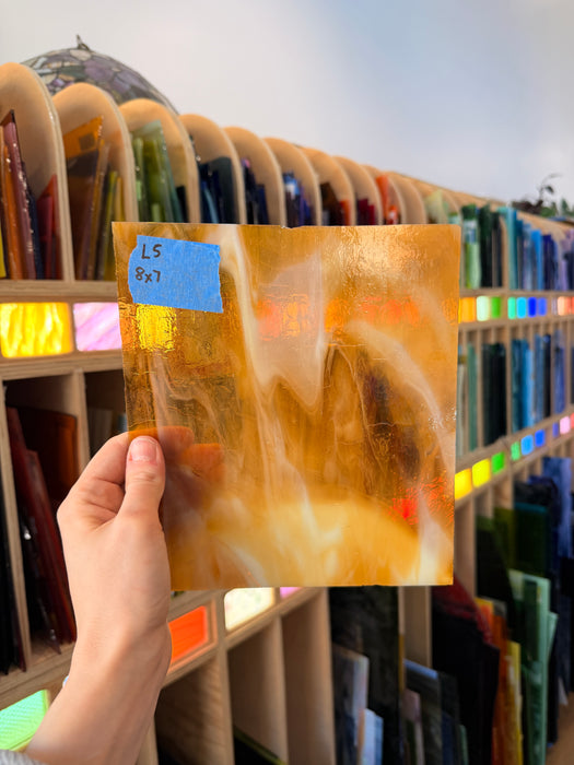 A warm, deep medium amber white sheet of Kokomo glass.