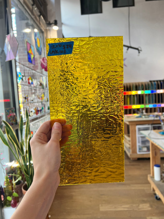 A bright yellow sheet of transparent glass by unknown maker.