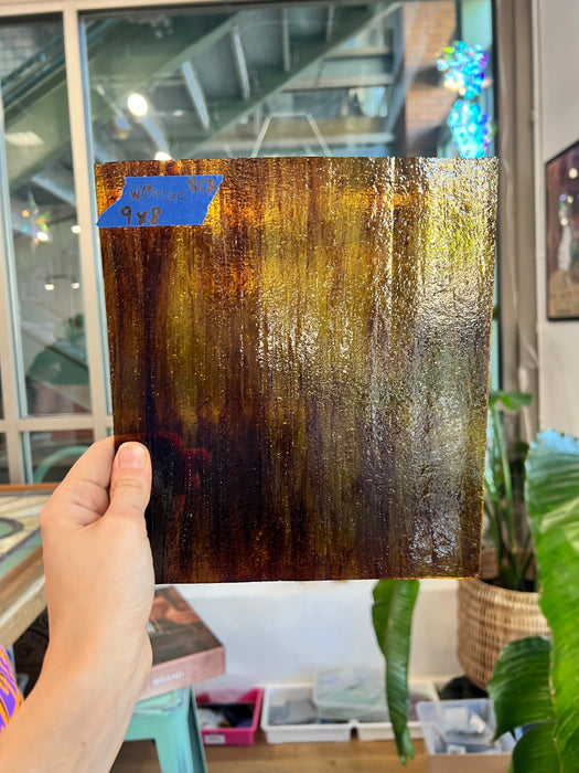 A vintage slice of brown & yellow glass - unknown maker, possibly Wissmach :).