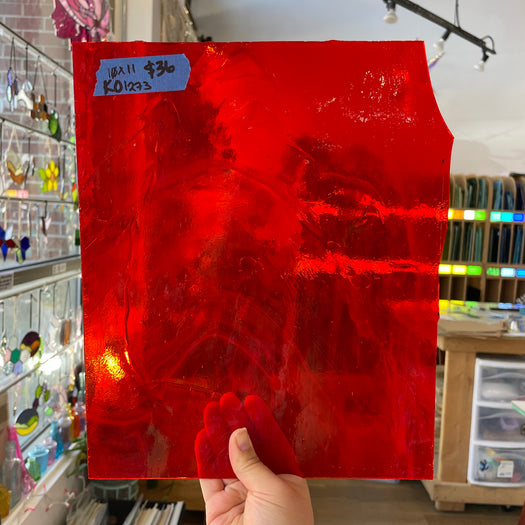 Pretty, vibrant Kokomo red transparent glass.