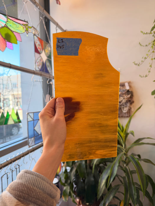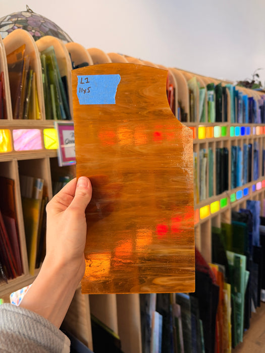 A warm, deep medium brown sheet of Kokomo glass.