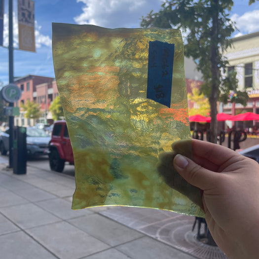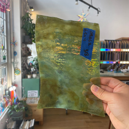 Green, brown, and white mixed transparent glass by Chicago Art Glass!