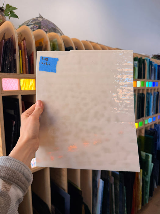 Milky, wispy peach mottled vintage glass. Glass by Chicago Art Glass - no longer made.