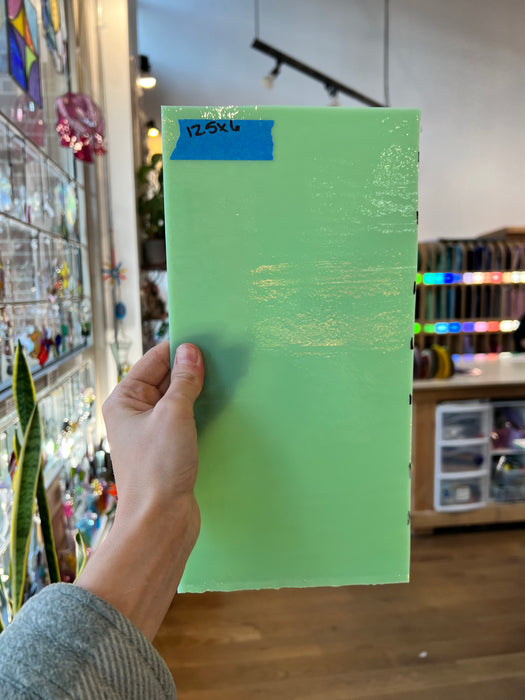 Stunning fusible glass by Youghiogheny that transforms from blue to pastel green depending on the light behind it. Fusible 96 COE